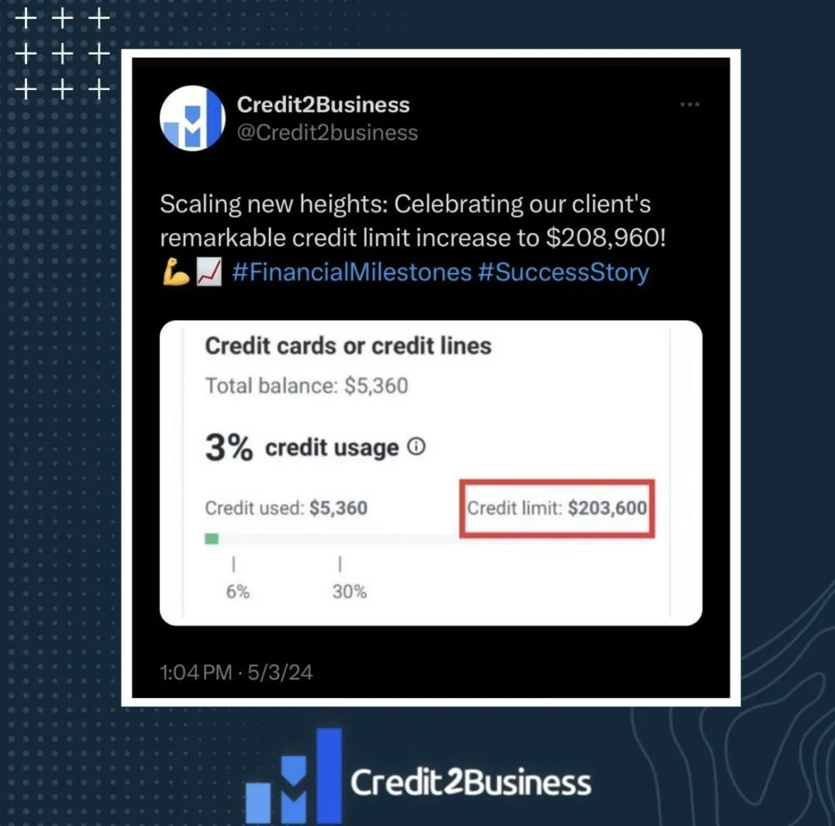 * Earnings and income representations made by Credit2Business, and their advertisers/sponsors are aspirational statements only of your earnings potential. These results are not typical and results will vary. The results on this page are OUR results and from years of testing. We can in NO way guarantee you will get similar results.